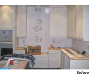 to life. Chair seats were re-covered in mauve and taupe stripes.