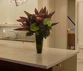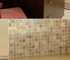 Inspired by the kitchen mosaic's spectrum of taupe, pink,