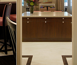 a creamy porcelain tile that mimics planks. Its light tone blends